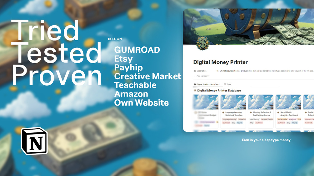 The Digital Money Printer is your ticket to getting ahead in no time. This is more than a Notion database—it’s a roadmap, a path to get you started building, launching, and monetizing your energy through digital products.