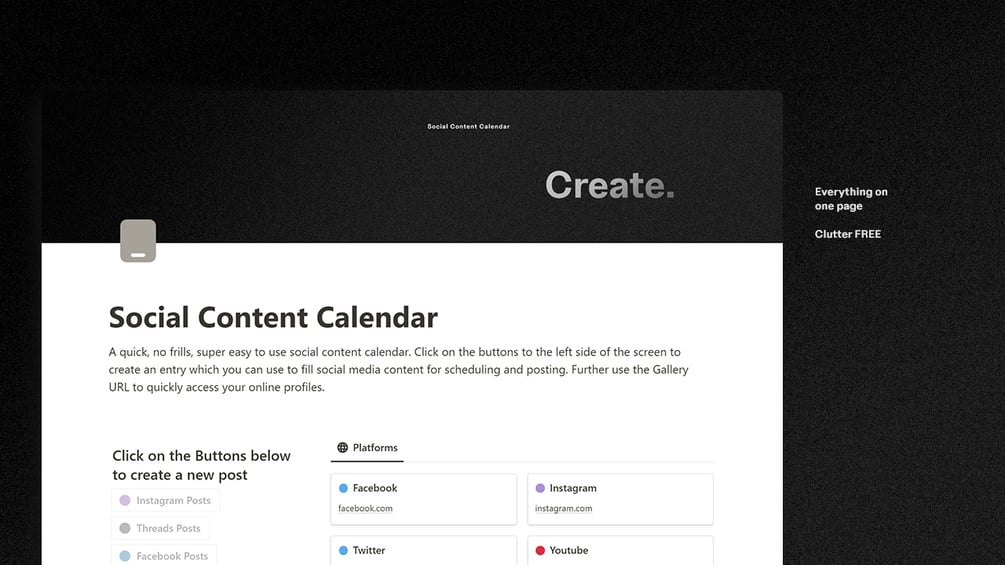 Here's a sneak peek at what you'll get within the Social Content Calendar workspace: